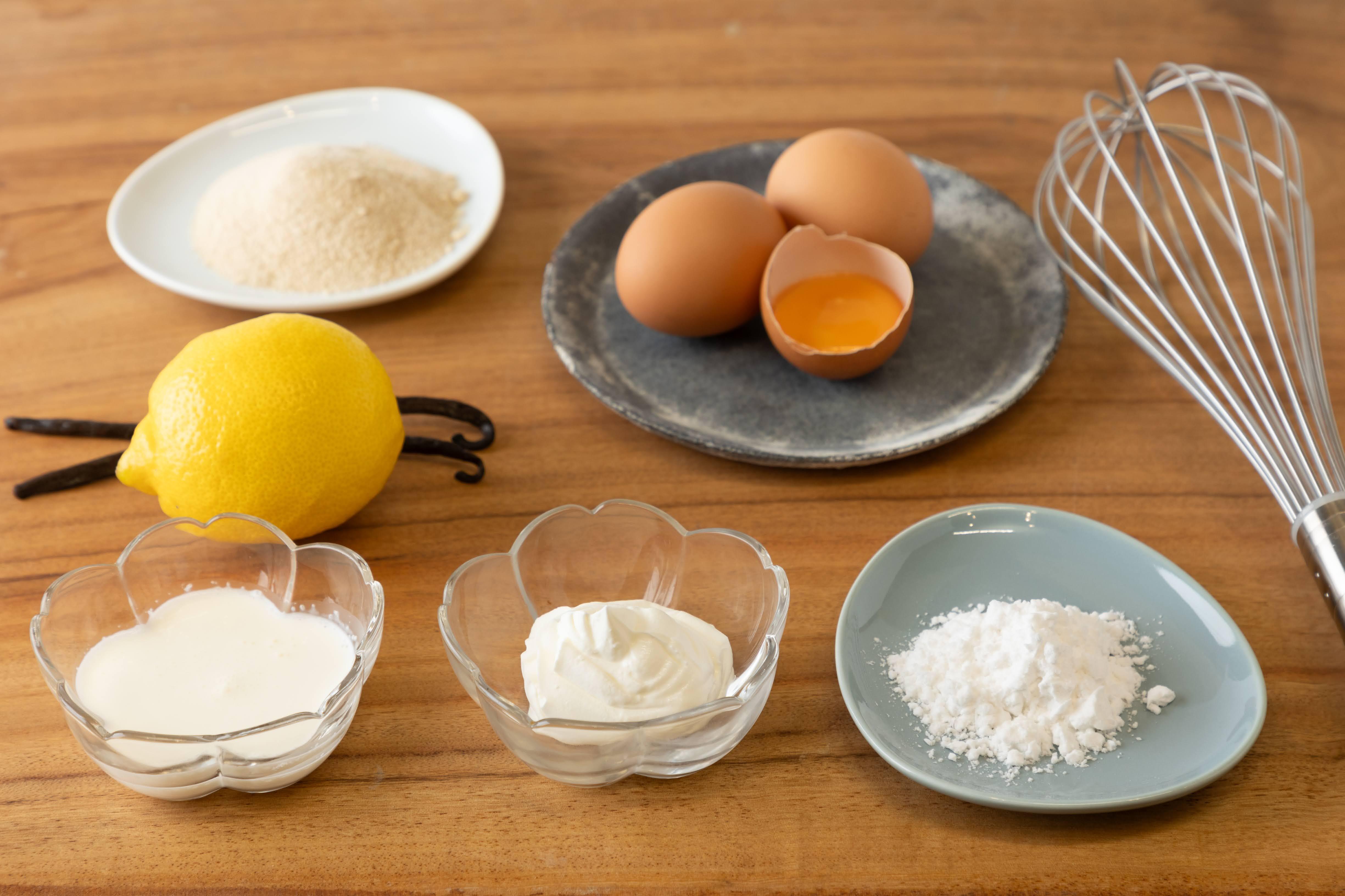サワークリーム、コンスターチ、レモン果汁、バニラビーンズ